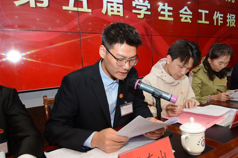 院学生会执行主席詹东山代表beat365正版唯一入口必一第五届学生会作工作报告,从思想引领、服务学生成才、校园文体活动、青年权益维护、组织改革等方面总结回顾了工作成果,并对未来工作作出规划和展望。之后,校学生会主席团成员彭浩代表校学生会致贺词。